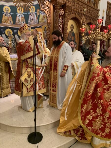 Στο τέλος της Θείας Λειτουργίας ο Σεβ. Μητροπολίτης κ. Κύριλλος απένειμε στο νέο Πρεσβύτερο το οφφίκιο του Αρχιμανδρίτου, ευχόμενος να τον σκέπουν, να τον περιφρουρούν και να καθοδηγούν τα βήματά του η Παναγία η Ακρωτηριανή, ο Ευαγγελιστής της αγάπης Ιωάννης ο Θεολόγος, ο άγιος Γεώργιος, πολιούχος και προστάτης της Ιεράπετρας, η Αγία Μεγαλομάρτυς Αικατερίνη, πολιούχος και προστάτης της Σητείας, και η Αγία Μεγαλομάρτυς και Ισαπόστολος Φωτεινή η Σαμαρείτιδα, και να τον χαίρεται η Τοπική Εκκλησία.