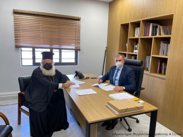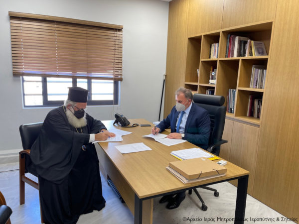 Υπογραφή προγραμματικής σύμβασης για την εκ βάθρων αναστήλωσης της παλαιάς οικίας του Πατριάρχου Μελετίου Μεταξάκη στο Μεταξοχώρι Ιεράπετρας – Η από κοινού προσπάθεια Δήμου και Τοπικής Εκκλησίας θα συνεχιστεί και σε άλλα έργα τόνισαν Μητροπολίτης Ιεραπύτνης και Σητείας Κύριλλος και ο Δήμαρχος Ιεράπετρας Θεοδόσιος Καλαντζάκης