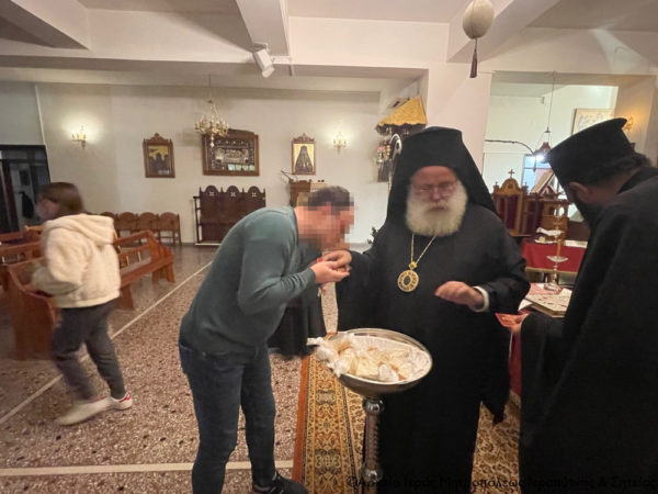 Επίσης, για την επανάληψη της εκπαιδευτικής δράσης της συμμετοχής σε εποπτική-βιωματική Θεία Λειτουργία συνεχάρη τον παριστάμενο Διευθυντή του 3ου Γυμνασίου κ. Χρυσοβαλάντη Ψαρουδάκη και τον Θεολόγο και Υποδιευθυντή του σχολείου κ. Χοϊλού, και ευχήθηκε ολόθερμα σε όλους καλά Χριστούγεννα. Ακολούθησε κέρασμα στο Αρχονταρίκι του ναού.