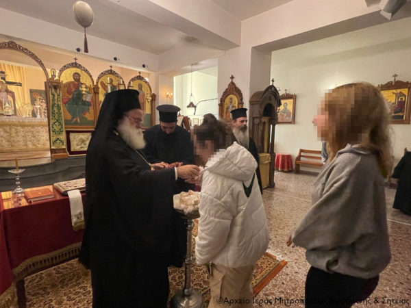 Στο τέλος ο Σεβασμιώτατος κ. Κύριλλος μίλησε στους μαθητές για τη σημασία του μυστηρίου της Θείας Ευχαριστίας ως προτύπωσης και πρόγευσης της Βασιλείας του Θεού και για την ανάγκη ενεργούς μετοχής των χριστιανών στα τελούμενα μέσα στο ναό, όπως στα πρώτα χριστιανικά χρόνια, ενώ δεν παρέλειψε να αναφερθεί και στο βαθύτερο νόημα της μεγάλης εορτής της Γεννήσεως του Σωτήρος Χριστού.