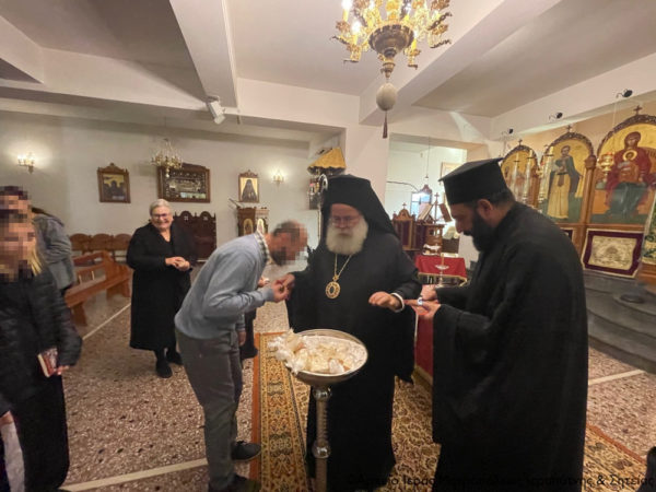 Επίσης, για την επανάληψη της εκπαιδευτικής δράσης της συμμετοχής σε εποπτική-βιωματική Θεία Λειτουργία συνεχάρη τον παριστάμενο Διευθυντή του 3ου Γυμνασίου κ. Χρυσοβαλάντη Ψαρουδάκη και τον Θεολόγο και Υποδιευθυντή του σχολείου κ. Χοϊλού, και ευχήθηκε ολόθερμα σε όλους καλά Χριστούγεννα. Ακολούθησε κέρασμα στο Αρχονταρίκι του ναού.
