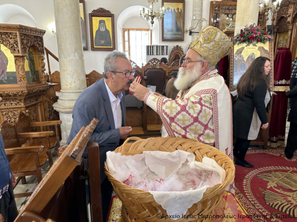 Στην ακολουθία έλαβαν μέρος ο Πρωτοσύγκελλος της Ι. Μητροπόλεως Πανοσιολ. Αρχιμ. Αμβρόσιος Σκαρβέλης, ο Ηγούμενος της Ι. Μονής Φανερωμένης Πανοσιολ. Αρχιμ. Παΐσιος Δερμιτζάκης και ο Ιερός Κλήρος της περιοχής, ενώ παρέστησαν πολυάριθμοι πιστοί, μεταξύ των οποίων ήταν ο Δήμαρχος Ιεράπετρας κ. Θεοδόσης Καλαντζάκης και η Αντιδήμαρχος κ. Μαρία Ρουμελιωτάκη.