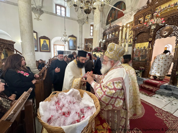 Στην ακολουθία έλαβαν μέρος ο Πρωτοσύγκελλος της Ι. Μητροπόλεως Πανοσιολ. Αρχιμ. Αμβρόσιος Σκαρβέλης, ο Ηγούμενος της Ι. Μονής Φανερωμένης Πανοσιολ. Αρχιμ. Παΐσιος Δερμιτζάκης και ο Ιερός Κλήρος της περιοχής, ενώ παρέστησαν πολυάριθμοι πιστοί, μεταξύ των οποίων ήταν ο Δήμαρχος Ιεράπετρας κ. Θεοδόσης Καλαντζάκης και η Αντιδήμαρχος κ. Μαρία Ρουμελιωτάκη.