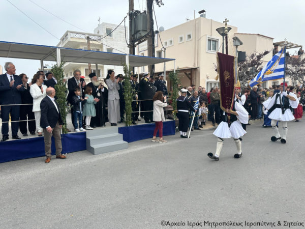 Με τη δέουσα λαμπρότητα και μεγαλοπρέπεια εορτάσθηκε την Τρίτη 25 Μαρτίου η επέτειος της εθνικής παλιγγενεσίας του 1821 στην πόλη της Σητείας. Η Δοξολογία για την εθνική επέτειο της 25ης Μαρτίου του 1821 τελέσθηκε κατά την τάξη στον Ιερό Καθεδρικό Ναό Αγίας Αικατερίνης Σητείας, χοροστατούντος του Σεβασμιωτάτου Μητροπολίτου Ιεραπύτνης και Σητείας κ. Κυρίλλου, με τη συμμετοχή του Ιερού Κλήρου της πόλεως και την παρουσία των εκπροσώπων της Δημοτικής Αρχής, της Περιφερειακής Ενότητας Λασιθίου, των Ενόπλων Δυνάμεων και των Σωμάτων Ασφαλείας, των σχολείων, συλλόγων και σωματείων της πόλης.