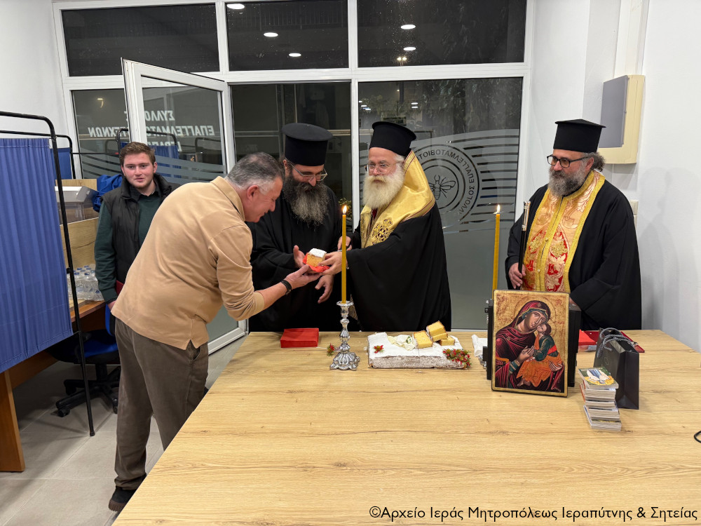 Το απόγευμα της Δευτέρας 5 Ιανουαρίου 2026 ο Σεβ. Μητροπολίτης Ιεραπύτνης και Σητείας κ. Κύριλλος μετέβη στην αίθουσα του Συλλόγου Επαγγελματοβιοτεχνών Ιεράπετρας, όπου ευλόγησε και έκοψε τη Βασιλόπιτα των Φορέων διοργάνωσης της Έκθεσης Αγροτικών Προϊόντων Ιεράπετρας Fresh Expo Ierapetra 2026.
