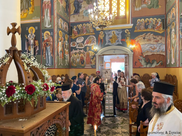 Την ιερά εικόνα μετέφερε ο Σεβασμιώτατος Μητροπολίτης Ιεραπύτνης και Σητείας κ. Κύριλλος, ο οποίος στη συνέχεια χοροστάτησε κατά την Ακολουθία του Εσπερινού και της Ιεράς Παρακλήσεως προς την Υπεραγία Θεοτόκο. Καθ᾽ όλη τη διάρκεια των Ακολουθιών πιστοί κάθε ηλικίας προσέρχονταν για να προσκυνήσουν την σεβάσμια εικόνα και να λάβουν την χάρη της Παναγίας της Ελεούσας.