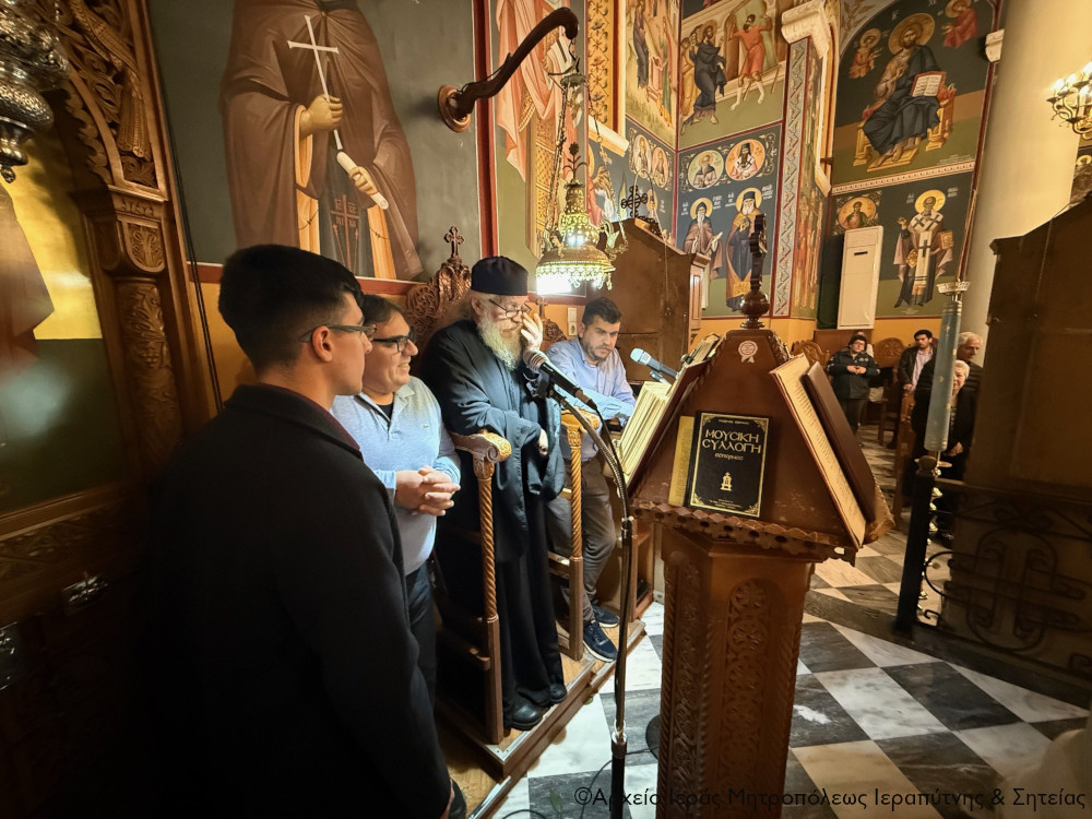 Στην Ακολουθία του Εσπερινού της Αγάπης έλαβαν μέρος ο Πρωτοσύγκελλος της Ι. Μητροπόλεως και Ηγούμενος της Ιεράς Σταυροπηγιακής Μονής Τοπλού Πανοσιολογιώτατος Αρχιμ. Αμβρόσιος Σκαρβέλης, ο Ηγούμενος της Μονής Παναγίας Φανερωμένης Ιεράπετρας Πανοσιολ. Αρχιμ. Παΐσιος Δερμιτζάκης, ο Προηγούμενος της Μονής Τοπλού Παν/τος Αρχιμ. Φιλόθεος Σπανουδάκης και ο Ιερός Κλήρος της πόλεως και της ευρύτερης περιοχής της Σητείας.