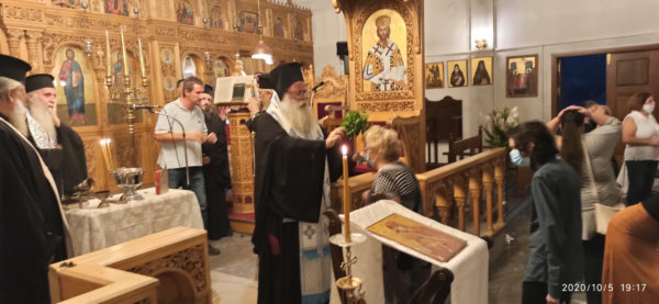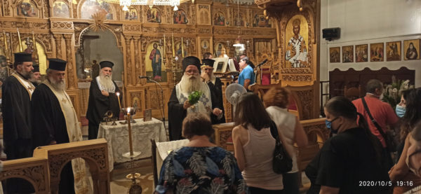 Τον Αγιασμό τέλεσε ο Σεβ. Μητροπολίτης Ιεραπύτνης και Σητείας κ. Κύριλλος, ο οποίος μετά το πέρας της Ακολουθίας αναφέρθηκε στην αξία τόσο της πατρώας εκκλησιαστικής μουσικής, όσο και της Αγιογραφίας και του Ψηφιδωτού στην εσωτερική καλλιέργεια του ανθρώπου και στην προσέγγιση του εν Τριάδι Θεού υπό το πρίσμα των ιερών τεχνών. Ο Σεβ. ευχήθηκε σε διδάσκοντες και διδασκομένους καλή διδακτική χρονιά και πλούσιο τον φωτισμό του Θεού για την ευόδωση του έργου τους, το οποίο, όπως σημείωσε αναφέρεται πρωτίστως στη δοξολογία του Θεού και στην πνευματική πρόοδο όλων. Επίσης, εξέφρασε την ευαρέσκεια του προς τον π. Νικόλαο Αλεξάκη και τους συνεργάτες του, τον υπεύθυνο της Σχολής Αγιογραφίας κ. Νικόλαο Λελεκάκη και την συνεργάτιδά του στο Εργαστήριο Ψηφιδωτού κ. Ισμήνη Γαλανοπούλου, στους οποίους ευχήθηκε καλή δύναμη στο έργο της διδασκαλίας και μεταλαμπάδευσης των εκκλησιαστικών αυτών τεχνών.
