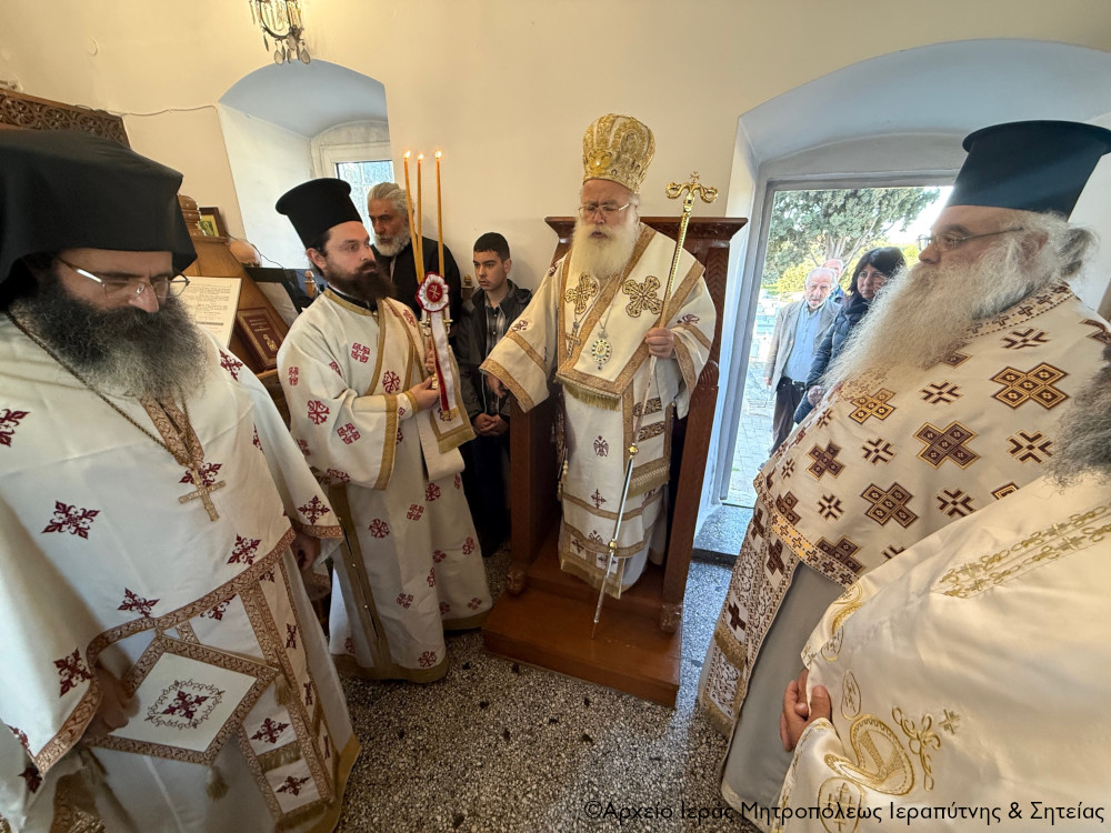 Πριν την Απόλυση της Αρχιερατικής Θείας Λειτουργίας ο Σεβασμιώτατος, περιστοιχούμενος από τον Πρωτοσύγκελλο Αρχιμ. Αμβρόσιο Σκαρβέλη και τον Ιερό Κλήρο της πόλης, τέλεσε τα προγραμματισμένα ιερά μνημόσυνα των μακαριστών Γεωργίου Βασιλάκη (τρίμηνο), Βασιλείου Μπλαζαντωνάκη (τρίμηνο), Κωνσταντίνου Ατσαλή (εξάμηνο), Χριστίνας Χρυσοφάκη (τρίμηνο), Μαρίας Γιαννικάκη (εξάμηνο), Μαρίας Φρονιμάκη-Λυκοπούλου (ετήσιο), Ιωάννου Χρυσοφάκη (τριετές), Ιωάννου (συναπάντημα) και Έλλης Λαντζανάκη (συναπάντημα). Στο τέλος ευχήθηκε ο εκ νεκρών Αναστάς Κύριος ημών Ιησούς Χριστός, και Νικητής του θανάτου να αναπαύει μέσα στο Αναστάσιμο Φως Του τις ψυχές των κεκοιμημένων για τους οποίους τελέσθηκε το ιερό μνημόσυνο και πάντων των αναπαυομένων στο Κοιμητήριο της πόλης.