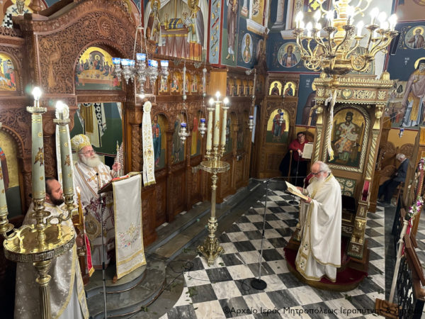 Κατά τη διάρκεια του Δοξαστικού «Αναστάσεως ημέρα» ακολούθησε ο ασπασμός της αγάπης του Σεβασμιωτάτου κ. Κυρίλλου με τον Ιερό Κλήρο. Μετά την Απόλυση, ο Σεβασμιώτατος ευχήθηκε εγκάρδια στο εκκλησίασμα χρόνια πολλά με τη Χάρη του Αναστάντος Κυρίου, πνευματική υγεία, δύναμη και προκοπή, και να αξιωθούμε όλοι και του χρόνου να εορτάσουμε τη λαμπροφόρο και ζωηφόρο Ανάσταση του Κυρίου και διένειμε στους πιστούς κόκκινα αυγά, ενώ εκείνοι προσκύνησαν το Ιερό Ευαγγέλιο και την εικόνα την Αναστάσεως του Κυρίου μας και αντάλλαξαν τον αναστάσιμο χαιρετισμό «Χριστός Ανέστη».