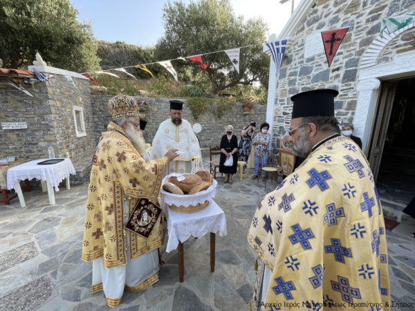 Στην Αρχιερατική Θεία Λειτουργία έλαβαν μέρος ο Πανοσιολ. Πρωτοσύγκελλος της Ι. Μητροπόλεως Αρχιμ. Αμβρόσιος Σκαρβέλης και Εφημέριοι της περιοχής, και εκκλησιάσθηκαν αρκετοί ευσεβείς χριστιανοί τηρώντας τα απαραίτητα μέτρα προστασίας από την πανδημία του κορωνοϊού.