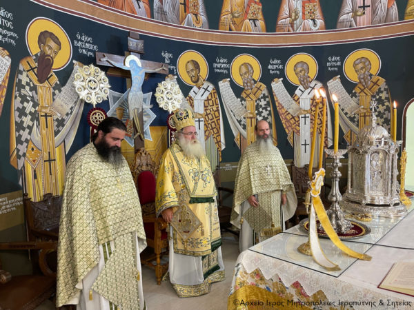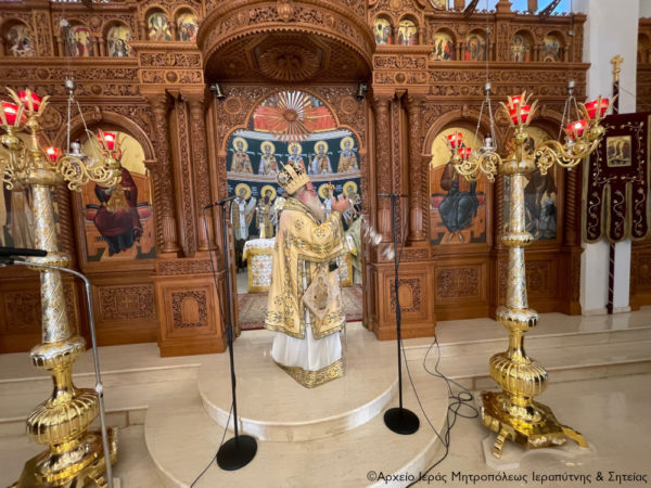 Στη Θεία Λειτουργία έλαβαν μέρος ο Πρωτοσύγκελλος Αρχιμ. Αμβρόσιος Σκαρβέλης, ο προϊστάμενος του ναού Αρχιμ. Πορφύριος Αγγελάκης και ο Ιερολ. Διάκονος π. Θεμιστοκλής Μπεϊνάς.