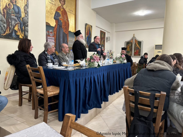 Μετά την Απόλυση της Αρχιερατικής Θείας Λειτουργίας ο Σεβασμιώτατος μίλησε στους μαθητές της Γ΄ τάξης του 2ου Γυμνασίου Ιεράπετρας στην αίθουσα εκδηλώσεων του ναού για το συνοδικό σύστημα της Εκκλησίας, επισημαίνοντας ότι αποτελεί το δημοκρατικό πολίτευμα διοίκησης των κατά τόπους Ορθοδόξων Εκκλησιών, καθώς οι αποφάσεις λαμβάνονται από όλους τους Μητροπολίτες σε σύνοδο κατά πλειοψηφία.