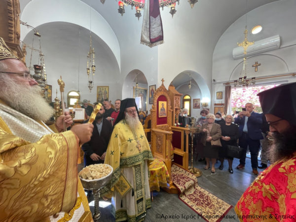 Στην Αρχιερατική Θεία Λειτουργία έλαβαν μέρος ο Πανοσιολ. Πρωτοσύγκελλος της Ι. Μητροπόλεως Αρχιμ. Αμβρόσιος Σκαρβέλης, ο Πανοσιολ. Αρχιμανδρίτης του Οικουμ. Θόνου π. Χρυσόστομος Παπαδάκης και ο Διάκονος Θεμιστοκλής Μπεϊνάς.