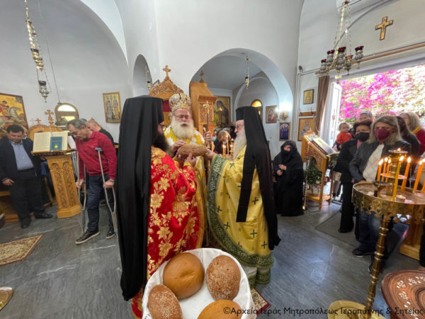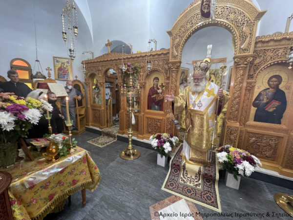 Στην Αρχιερατική Θεία Λειτουργία έλαβαν μέρος ο Πανοσιολ. Πρωτοσύγκελλος της Ι. Μητροπόλεως Αρχιμ. Αμβρόσιος Σκαρβέλης, ο Πανοσιολ. Αρχιμανδρίτης του Οικουμ. Θόνου π. Χρυσόστομος Παπαδάκης και ο Διάκονος Θεμιστοκλής Μπεϊνάς.