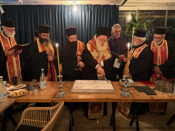 Στην τελετή κοπής της Βασιλόπιτας έλαβαν μέρος ο Πρωτοσύγκελλος της Μητροπόλεως Πανοσιολ. Αρχιμ. Αμβρόσιος Σκαρβέλης και όλοι οι Ιερείς της πόλεως Ιεράπετρας.