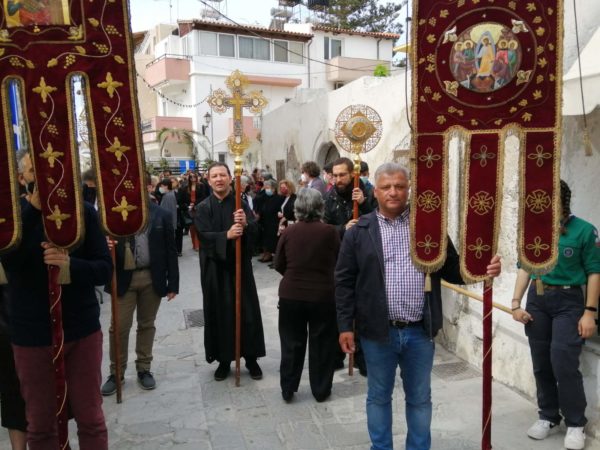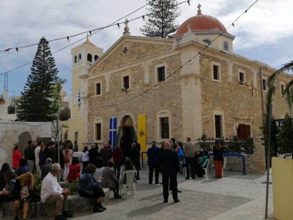 Από νωρίς το πρωί της Δευτέρας του Πάσχα, πλήθος πιστών έφθανε στον Ιερό Καθεδρικό Ναό του Αγίου Γεωργίου στη γραφική ομώνυμη συνοικία που βρίσκεται στα όρια της παλιάς πόλης και του Εμπορικού Κέντρου της Ιεράπετρας, τηρώντας όλα τα μέτρα ασφαλείας και πρόληψης κατά της εξάπλωσης του κορωνοϊού.