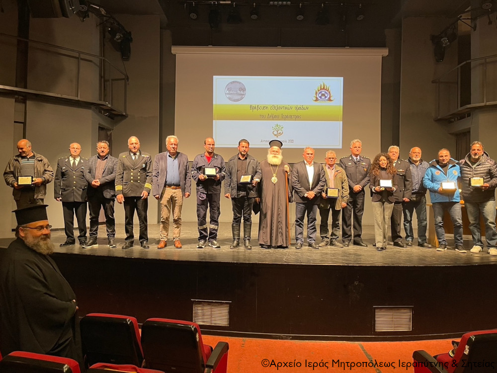 Σε μια ξεχωριστή τελετή, που πραγματοποιήθηκε το απόγευμα του Σαββάτου στη Δημοτική αίθουσα «Μελίνα Μερκούρη», ο Δήμος Ιεράπετρας σε συνεργασία με την Πυροσβεστική Υπηρεσία Ιεράπετρας βράβευσαν τις Εθελοντικές Ομάδες που δραστηριοποιούνται στον Δήμο και συνέβαλαν στην αντιπυρική προστασία του έτους 2022.