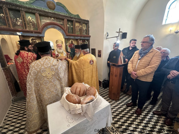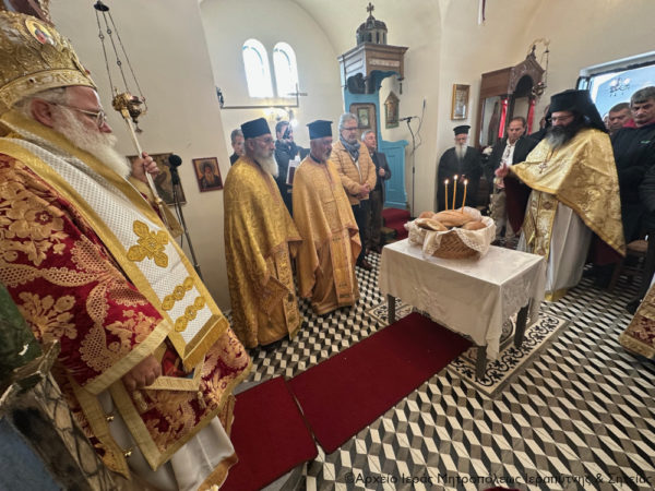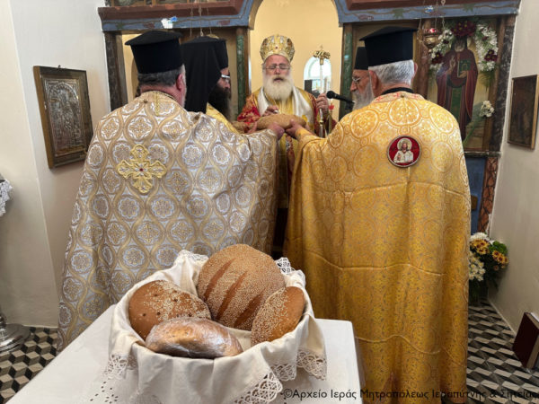 Ο Σεβ. Μητροπολίτης Ιεραπύτνης και Σητείας κ. Κύριλλος χοροστάτησε στην ακολουθία του Όρθρου και στη συνέχεια ιερούργησε, κήρυξε τον θείο λόγο, αναφερόμενος στον οσιακό βίο και την προσωπικότητα του τιμωμένου τοπικού μας αγίου και ευλόγησε τους άρτους.