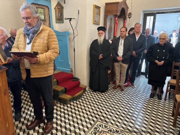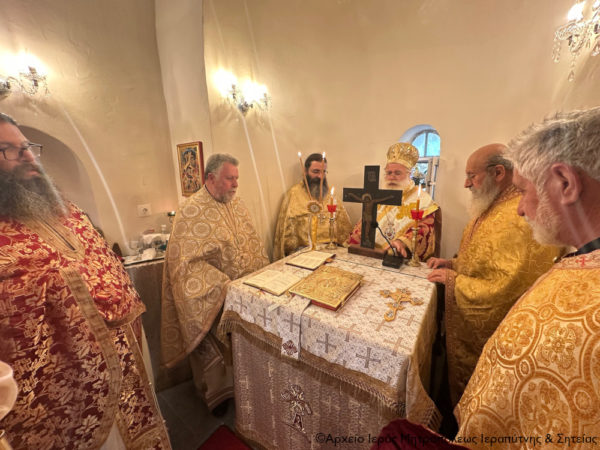 Στην Αρχιερατική Θεία Λειτουργία έλαβαν μέρος ο Πανοσιολ. Πρωτοσύγκελλος της Ι. Μητροπόλεως και Ηγούμενος της Ιεράς Μονής Τοπλού Αρχιμ. Αμβρόσιος Σκαρβέλης, ο Πανοσιώτατος Προηγούμενος της Μονής Αρχιμ. Φιλόθεος Σπανουδάκης, ο Αιδεσιμ. Πρωτ. Σπυρίδων Ρελάκης, Εφημέριος της Ενορίας Παλαικάστρου και Αρχιερατικός Επίτροπος Δ΄ Αρχιερ. Περιφερείας, ο Αιδεσιμ. Οικονόμος π. Εμμανουήλ Μαρκάκης, Εφημέριος της Ενορίας Κρυονερίου, ο Αιδεσιμ. Ιερεύς Εμμανουήλ Παπαευαγγελίδης, Εφημέριος της Ενορίας Κελλαρίων, και ο Διάκονος Θεμιστοκλής Μπεϊνάς, ενώ συμπροσευχόμενος παρέστη ο συνταξ. Εφημέριος της Ενορίας Ζάκρου πρωτ. Πολύκαρπος Ζουριδάκης.