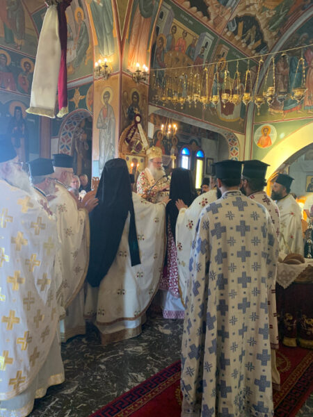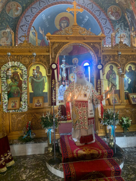 Ανήμερα της πανηγύρεως ο Σεβ. Μητροπολίτης Ιεραπύτνης και Σητείας κ. Κύριλλος χοροστάτησε κατά την ακολουθία του Όρθρου, ευλόγησε τους άρτους και στη συνέχεια ιερούργησε και κήρυξε επίκαιρα τον θείο λόγο, αναφερθείς στο θαύμα του Αρχαγγέλου Γαβριήλ στις 11 Ιουνίου 980 μ.Χ. στις Καρυές του Αγίου Όρους, όπου παραδόθηκε ο Αρχαγγελικός Ύμνος «Άξιον εστίν ως αληθώς…», αλλά κυρίως στη μυστική σχέση, τον σεβασμό και την ευλάβεια του ευσεβούς λαού μας προς το ιερό πρόσωπο της Υπεραγίας Θεοτόκου.