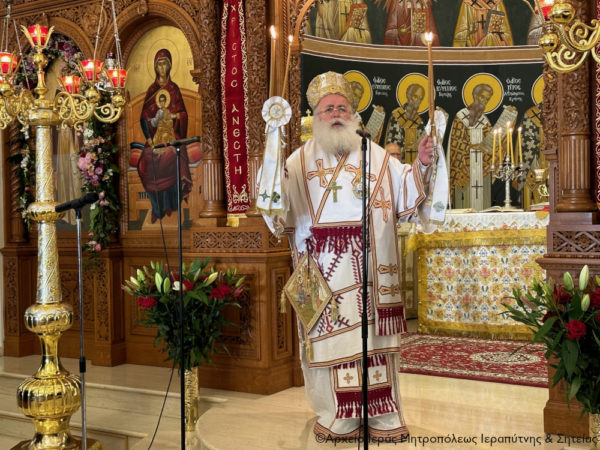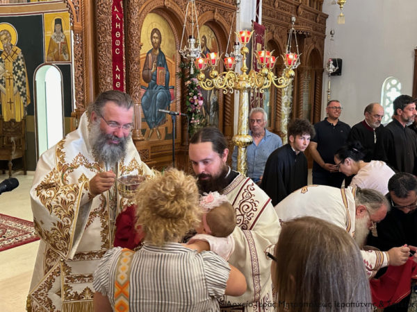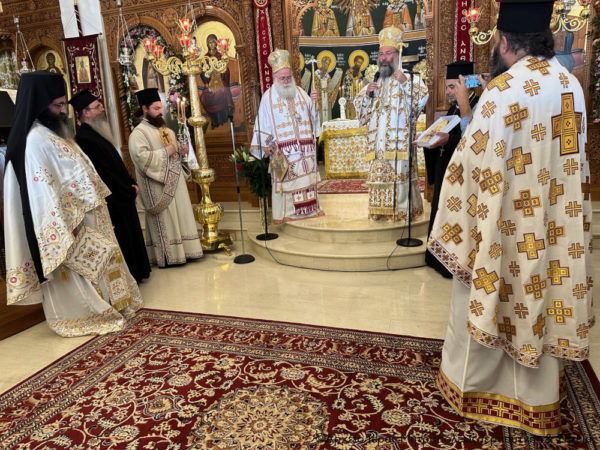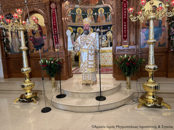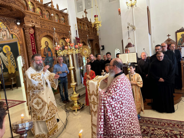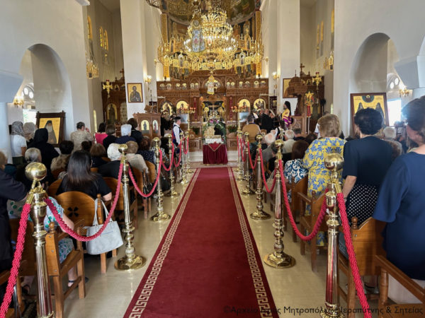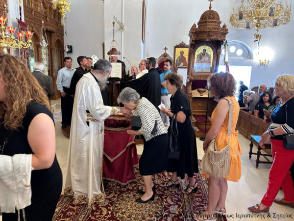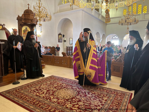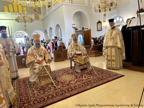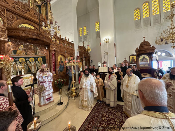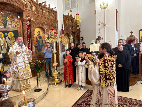 Ανήμερα της εορτής χοροστάτησε κατά την Ακολουθία του Όρθρου και στη συνέχεια τελέσθηκε η Θεία Λειτουργία, κατά την οποία προεξήρχε ο Σεβασμιώτατος Μητροπολίτης Ρεθύμνης και Αυλοποτάμου κ. Πρόδρομος και συνιερούργησε ο Σεβασμιώτατος Μητροπολίτης Ιεραπύτνης και Σητείας κ. Κύριλλος.