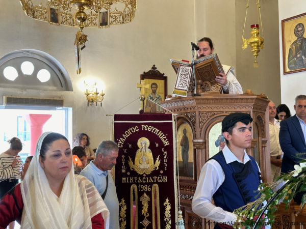 Στην Αρχιερατική Θεία Λειτουργία έλαβαν μέρος ο Πανοσιολ. Αρχιμανδρίτης Αμβρόσιος Σκαρβέλης, Πρωτοσύγκελλος της Ιεράς Μητροπόλεως, ο Πανοσιολ. Αρχιμανδρίτης Πορφύριος Αγγελάκης, Εφημέριος και προϊστάμενος του πανηγυρίζοντος ναού, ο Αιδεσιμ. Πρωτ. Δημήτριος Τσακπίνης, Κληρικός της Ιεράς Μητροπόλεως Ρεθύμνης και Αυλοποτάμου, ο Αιδεσ. Σκευοφύλακας π. Μιχαήλ Ξυδιανός, συνταξιούχος Εφημέριος, ο Αιδ/τος Ιερεύς Γεώργιος Λογκάκης και ο Διάκονος Θεμιστοκλής Μπεϊνάς, ενώ τους ύμνους απέδωσαν θεσπέσια δύο χοροί ιεροψαλτών με επικεφαλής τον Πρωτοψάλτη του Ι. Μ. Ναού Αγ. Γεωργίου Ιεράπετρας και Διευθυντή της Σχολής Βυζαντινής Μουσικής της Ιεράς Μητροπόλεως κ. Ιωάννη Αρώνη στον δεξιό χορό, τον οποίο ο Σεβασμιώτατος Μητροπολίτης Ιεραπύτνης και Σητείας κ. Κύριλλος ευχαρίστησε ιδιαιτέρως μαζί με τους ιεροψάλτες του ναού κ. Σταύρο Δασκαλάκη και κ. Εμμανουήλ Καραλάκη.