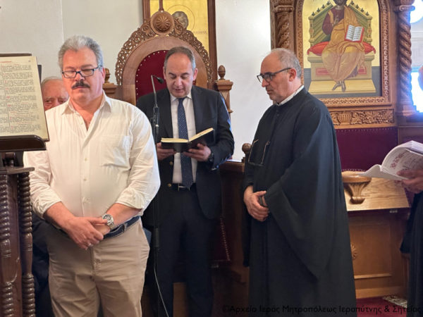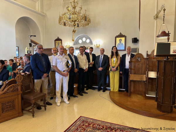 Επίσης ευχαρίστησε από καρδιάς τους παριστάμενους εκπροσώπους των τοπικών Αρχών, τον Α΄ Αντιπρόεδρο της Βουλής κ. Ιωάννη Πλακιωτάκη, τον Δήμαρχο Ιεράπετρας κ. Εμμανουήλ Φραγκούλη, τη Βουλευτή Λασιθίου κ. Κατερίνα Σπυριδάκη και τον Λιμενάρχη Ιεράπετρας κ. Ιωάννη Παπαδάκη, τα μέλη του Πολιτιστικού και Λαογραφικού Συλλόγου Ιεράπετρας «Κρητικός Χορός» που με τις παραδοσιακές φορεσιές τους πλαισίωσαν τις Τίμιες Κάρες των Αγίων, και τον προϊστάμενο του ναού Αρχιμανδρίτη Πορφύριο με τους συνεργάτες του. Ακόμα ευχαρίστησε τον Σύλλογο Ρεθυμνίων Μικρασιατών, τα μέλη του οποίου παρίσταντο στην πανήγυρη στο πλαίσιο προσκυνηματικής εκδρομής τους, οι οποίοι ακολούθησαν τον Σεβασμιώτατο Ποιμενάρχη τους στην Ιεράπετρα.