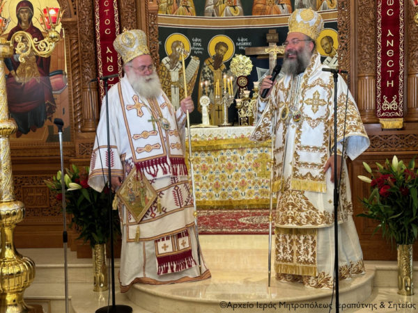 Όπως υπογράμμισε είναι «ημέρα πνευματικής χαράς και ευφροσύνης για την Ιερά μας Μητρόπολοη, καθώς ο καλός και φιλότιμος Αδελφός, Σεβασμιώτατος Μητροπολίτης κ. Πρόδρομος, αποδέχθηκε με μεγάλη χαρά την ταπεινή μας πρόσκληση και μάς έφερε μεγάλη ευλογία μαζί με τους αγίους Τέσσερις Νεομάρτυρες του Ρεθύμνου, οι οποίοι πριν από διακόσια ακριβώς χρόνια εθελουσίως έγιναν θυσία ζώσα και υπέστησαν μαρτυρική τελείωση “για του Χριστού την πίστη την αγία και για της πατρίδος την ελευθερία”».
