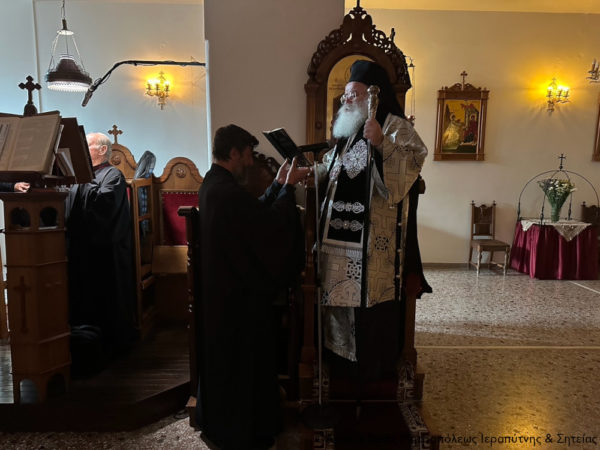 Προηγήθηκαν οι ακολουθίες του Μεσονυκτικού, του Όρθρου και των Ωρών. Πριν την απόλυση της Αρχιερατικής Θείας Λειτουργίας των Προηγιασμένων Τιμίων Δώρων, ο Σεβασμιώτατος κ. Κύριλλος ευχήθηκε εγκάρδια στο εκκλησίασμα καλό και ευλογημένο «το στάδιον των αρετών» της κατανυτικής περιόδου της Μεγάλης Τεσσαρακοστής.