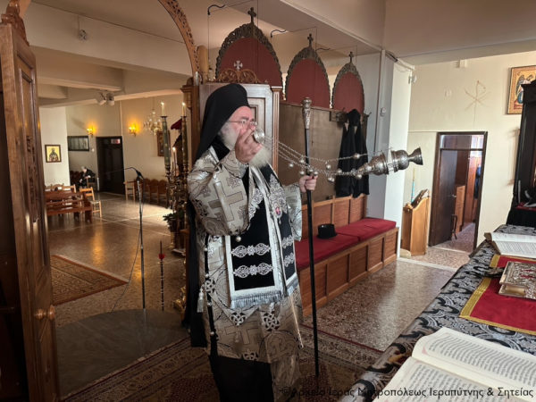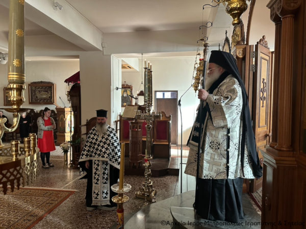 Προηγήθηκαν οι ακολουθίες του Μεσονυκτικού, του Όρθρου και των Ωρών. Πριν την απόλυση της Αρχιερατικής Θείας Λειτουργίας των Προηγιασμένων Τιμίων Δώρων, ο Σεβασμιώτατος κ. Κύριλλος ευχήθηκε εγκάρδια στο εκκλησίασμα καλό και ευλογημένο «το στάδιον των αρετών» της κατανυτικής περιόδου της Μεγάλης Τεσσαρακοστής.