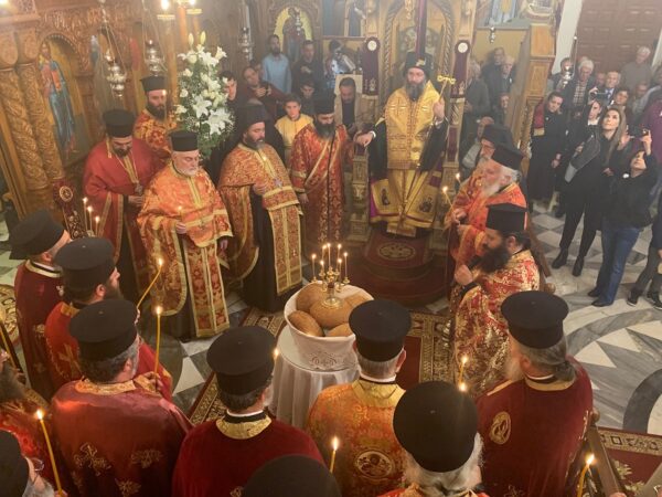 Ανήμερα της πανηγύρεως τελέσθηκε η ακολουθία του Όρθρου, κατά την οποία χοροστάτησε ο Σεβ. Μητροπολίτης Πέτρας και Χερρονήσου κ. Γεράσιμος και ακολούθησε πολυαρχιερατική Θεία Λειτουργία, στην οποία προέστη ο Σεβ. Μητροπολίτης Γορτύνης και Αρκαδίας κ. Μακάριος και συνιερούργησαν ο Σεβ. Μητροπολίτης Πέτρας και Χερρονήσου κ. Γεράσιμος, ο Σεβ. Μητροπολίτης Ιεραπύτνης και Σητείας κ. Κύριλλος και ο Θεοφ. Επίσκοπος Κνωσού κ. Πρόδρομος. Επίσης έλαβαν μέρος ο Πανοσιολ. Πρωτοσύγκελλος της Ι. Μητροπόλεως Πέτρας και Χερρονήσου Αρχιμ. Τίτος Ταμπακάκης, ο Πανοσιολ. Υπογραμματεύς της Ιεράς Επαρχιακής Συνόδου της Εκκλησίας Κρήτης Αρχιμ. Νήφων Βασιλάκης, ο Πανοσιώτατος Ηγούμενος της Ιεράς Μονής Τοπλού Αρχιμ. Φιλόθεος Σπανουδάκης, ο Ιερός Κλήρος της πόλεως και άλλοι Κληρικοί.