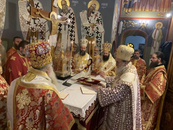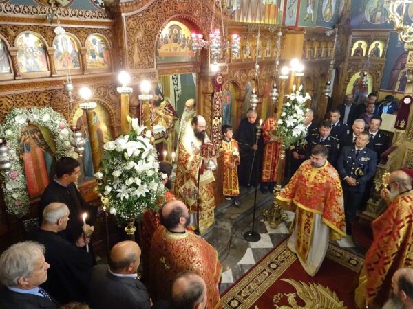 Ανήμερα της πανηγύρεως τελέσθηκε η ακολουθία του Όρθρου, κατά την οποία χοροστάτησε ο Σεβ. Μητροπολίτης Πέτρας και Χερρονήσου κ. Γεράσιμος και ακολούθησε πολυαρχιερατική Θεία Λειτουργία, στην οποία προέστη ο Σεβ. Μητροπολίτης Γορτύνης και Αρκαδίας κ. Μακάριος και συνιερούργησαν ο Σεβ. Μητροπολίτης Πέτρας και Χερρονήσου κ. Γεράσιμος, ο Σεβ. Μητροπολίτης Ιεραπύτνης και Σητείας κ. Κύριλλος και ο Θεοφ. Επίσκοπος Κνωσού κ. Πρόδρομος. Επίσης έλαβαν μέρος ο Πανοσιολ. Πρωτοσύγκελλος της Ι. Μητροπόλεως Πέτρας και Χερρονήσου Αρχιμ. Τίτος Ταμπακάκης, ο Πανοσιολ. Υπογραμματεύς της Ιεράς Επαρχιακής Συνόδου της Εκκλησίας Κρήτης Αρχιμ. Νήφων Βασιλάκης, ο Πανοσιώτατος Ηγούμενος της Ιεράς Μονής Τοπλού Αρχιμ. Φιλόθεος Σπανουδάκης, ο Ιερός Κλήρος της πόλεως και άλλοι Κληρικοί.