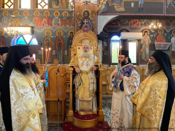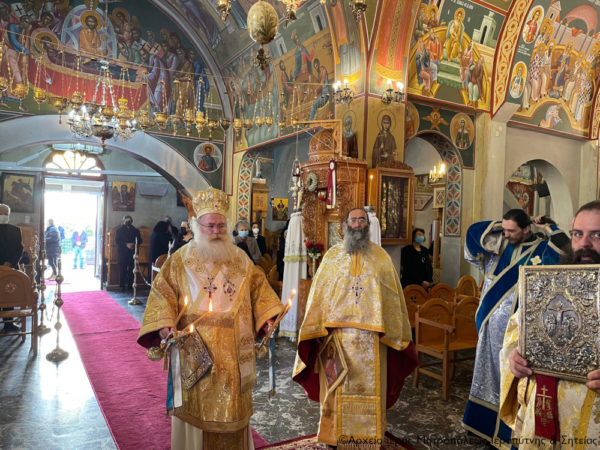 Στην Αρχιερατική Θεία Λειτουργία έλαβαν μέρος, ο Πανοσιολ. Πρωτοσύγκελος της Ι. Μητροπόλεως Αρχιμ. Αμβρόσιος Σκαρβέλης, ο Πανοσιολ Αρχιμ. Ιερόθεος Δασκαλάκης, Αδελφός της Ιεράς Μονής Αγίου Γεωργίου Επανωσήφη της Ιεράς Αρχιεπισκοπής Κρήτης, ο Πανοσιολ Αρχιμ. Πορφύριος Αγγελάκης, ιερατικώς προϊστάμενος της Ενορίας του Ιερού Καθεδρικού Ναού Αγίας Φωτεινής Ιεράπετρας, ο Πανοσιώτατος Αρχιμ. Ευγένιος Σπηλιαρωτάκης, Αδελφός της Ιεράς Μονής Τιμίου Προδρόμου Καψά και Εφημέριος Ενορίας Πεύκων Σητείας, ο Αιδεσιμώτατος Σκευοφύλακας π. Μιχαήλ Ξυδιανός, Συνταξιούχος Εφημέριος, και οι Ιερολογιώτατοι Διάκονοι και Αδελφοί της Μονής Αγίου Γεωργίου Επανωσήφη Κύριλλος Χριστοφής, Νεκτάριος και Ευγένιος Μανδελένης, ενώ εκκλησιάσθηκαν συμπροσευχόμενοι ο Πανοσιολ. Αρχιμ. Χρυσόστομος Παπαδάκης, οι Αιδ/τοι Πρωτ. Μιχαήλ Τζώρτζης και Πρωτ. Σάββας Λιναρδάκης και ο Διάκονος π. Θεμιστοκλής Μπεϊνάς, και αρκετοί ευσεβείς χριστιανοί από την Ιεράπετρα και αλλού, ανάμεσά τους ο Αντιπεριφερειάρχης Λασιθίου κ. Γιάννης Γουλιδάκης, ο διοικητής του ΕΚΑΒ Ιεράπετρας και Γραμματέας του Δημοτικού Συμβουλίου Ιεράπετρας κ. Γιώργος Αγγελάκης και ο Διοικητής του Νοσοκομείου Ιεράπετρας κ. Εμμανουήλ Καλλιονάκης, τηρώντας όλοι τα θεσπισθέντα μέτρα προστασίας από τον κορωνοϊό.