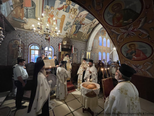 Με ιδιαίτερη λαμπρότητα και ιεροπρέπεια τελέσθηκε το απόγευμα της Πέμπτης 5 Αυγούστου 2021 ο Μέγας πανηγυρικός Αρχιερατικός Εσπερινός στον πανηγυρίζοντα ιστορικό Ιερό Ενοριακό Ναό Mεταμορφώσεως Σωτήρος στην «Κάτω Μερά» της πόλεως Ιεράπετρας, χοροστατούντος του Σεβ. Μητροπολίτου Ιεραπύτνης και Σητείας κ. Κυρίλλου, ο οποίος ευλόγησε τους προσφερόμενους άρτους και κήρυξε επίκαιρα τον θείο λόγο.