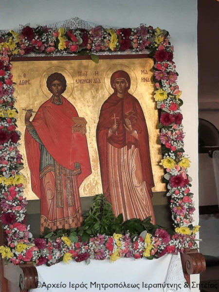 Ττελέσθηκε το απόγευμα του Σαββάτου ο Μέγας Αρχιερατικός Εσπερινός της εορτής της Αγίας μεγαλομάρτυρος Μαρίνης στον πανηγυρίζοντα ομώνυμο Ιερό Ναό της Ενορίας Επάνω Χωριού Ιεράπετρας κοντά στον οικισμό Μοναστηράκι, χοροστατούντος του Σεβ. Μητροπολίτου Ιεραπύτνης και Σητείας κ. Κυρίλλου, ο οποίος ευλόγησε τους προσφερόμενους άρτους και μίλησε κατάλληλα στο εκκλησίασμα.