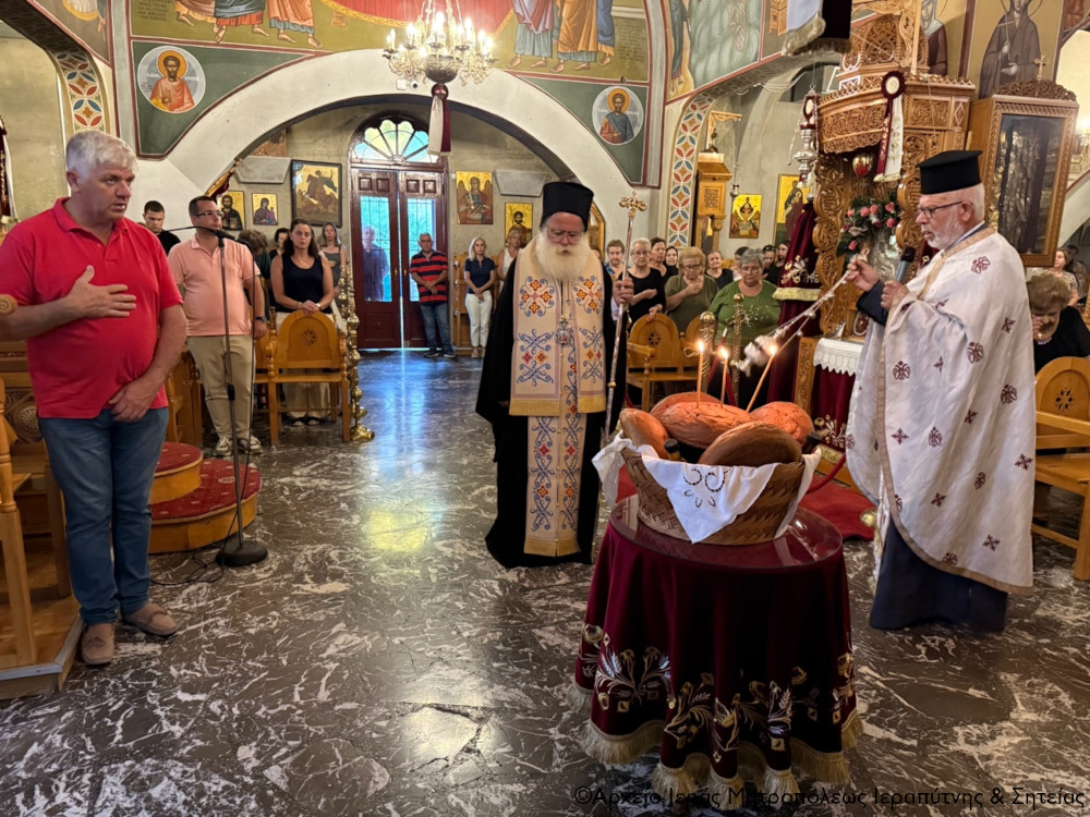 Το απόγευμα της Κυριακής 3 Αυγούστου 2025 ο Σεβ. Μητροπολίτης Ιεραπύτνης και Σητείας κ. Κύριλλος χοροστάτησε στην ακολουθία του Εσπερινού και του Μεγάλου Παρακλητικού Κανόνος στην Υπεραγία Θεοτόκο, ευλόγησε τους προσφερόμενους άρτους και στο τέλος κήρυξε κατάλληλα τον θείο λόγο στον Ιερό Ενοριακό Ναό της Παναγίας της Ελεούσας Ιεράπετρας, όπου φυλάσσεται η ομώνυμη θαυματουργή εικόνα από το Ρεϊζδερέ της Μικράς Ασίας.