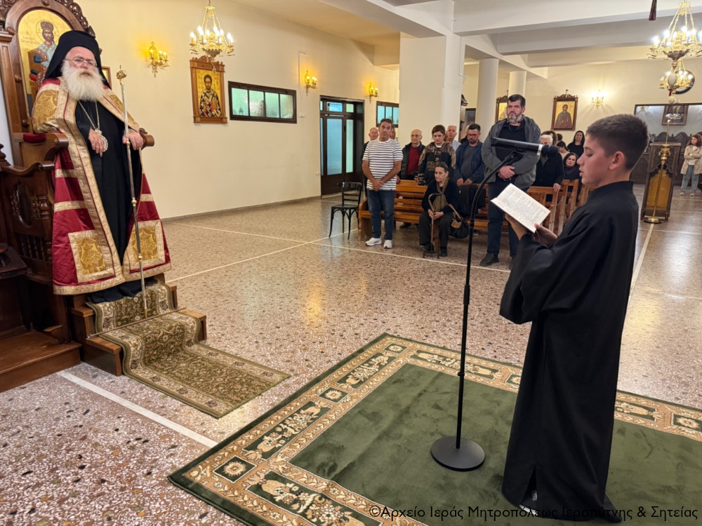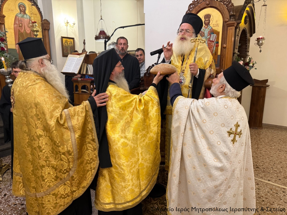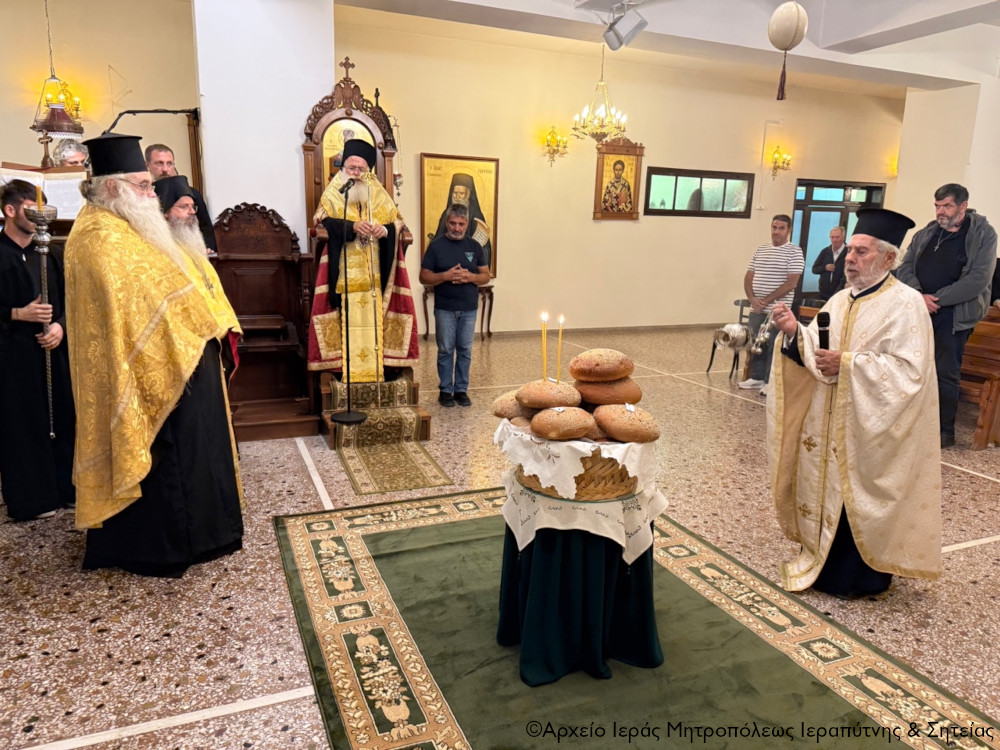 Στην ακολουθία χοροστάτησε ο Σεβασμιώτατος Μητροπολίτης Ιεραπύτνης και Σητείας κ. Κύριλλος, ο οποίος ευλόγησε τους άρτους και κήρυξε επίκαιρα τον θείο λόγο.