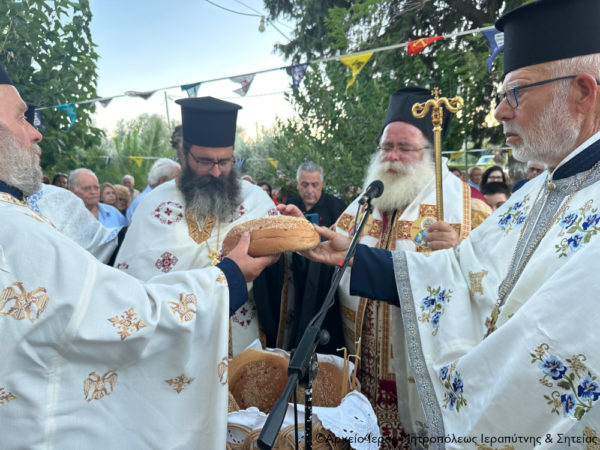 Στην ακολουθία χοροστάτησε ο Μητροπολίτης Ιεραπύτνης και Σητείας κ. Κύριλλος, ο οποίος ευλόγησε τους προσφερόμενους άρτους και κήρυξε κατάλληλα τον θείο λόγο στο προαύλιο του πανηγυρίζοντος ναού.