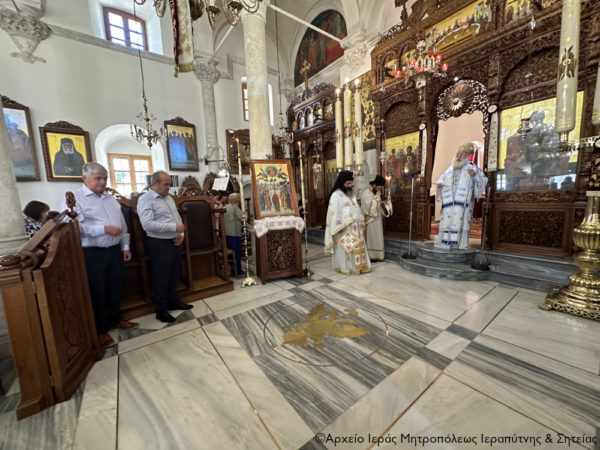 Πριν την Απόλυση τέλεσε το τεσσαρακονθήμερο μνημόσυνο του μακαριστού Εμμανουήλ Παπαδάκη, πατρός του νομικού Συμβούλου της Μητροπόλεως Νικολάου Παπαδάκη.
