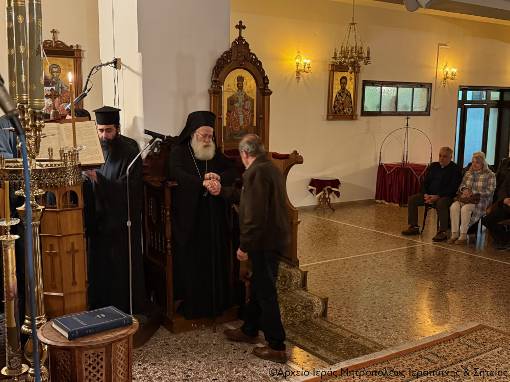Το απόγευμα της Κυριακής της Τυρινής 22 Φεβρουαρίου 2026 ο Σεβασμιώτατος Μητροπολίτης Ιεραπύτνης και Σητείας κ. Κύριλλος χοροστάτησε στην ακολουθία του Α Κατανυκτικού Εσπερινού, του λεγόμενου και Εσπερινού της Συγγνώμης, στον κατάμεστο από πιστούς Ιερό Καθεδρικό Ναό Αγίας Φωτεινής Ιεράπετρας.