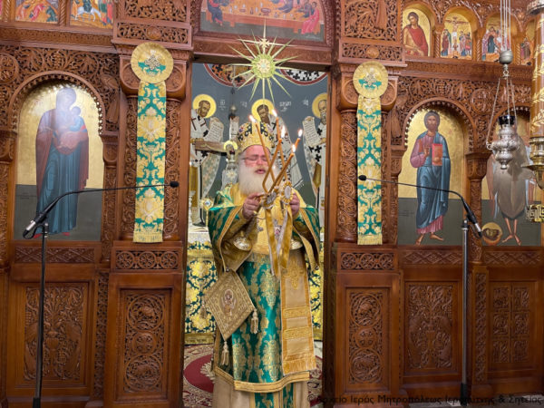 Στην Αρχιερατική Θεία Λειτουργία έλαβαν μέρος ο Πρωτοσύγκελος της Ι. Μητρόπολης Πανοσιολ. Αρχιμ. Αμβρόσιος Σκαρβέλης και ο Εφημέριος του ναού Αιδεσ/τος Πρωτ. Νικόλαος Παθιάκης, καθώς και ο Ιερολ. Διάκονος π. Θεμιστοκλής Μπεϊνάς.