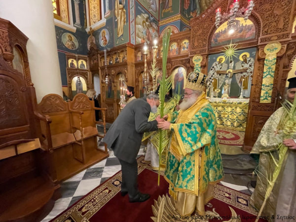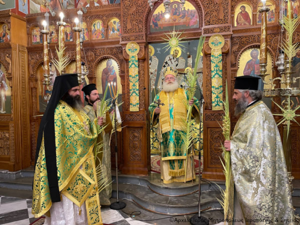 Με κάθε ιεροπρέπεια, με κατάνυξη και με λαμπρότητα εορτάσθηκε η Κυριακή των Βαΐων (17 Απριλίου 2022) στον Ιερό Καθεδρικό Ναό Αγίας Αικατερίνης Σητείας. Ο Μητροπολίτης Ιεραπύτνης και Σητείας κ. Κύριλλος χοροστάτησε στην ακολουθία του Όρθρου, ευλόγησε τα βάγια, και στη συνέχεια τέλεσε τη Θεία Λειτουργία του Ιερού Χρυσοστόμου και κήρυξε επίκαιρα τον θείο λόγο.