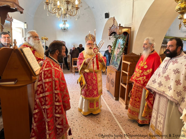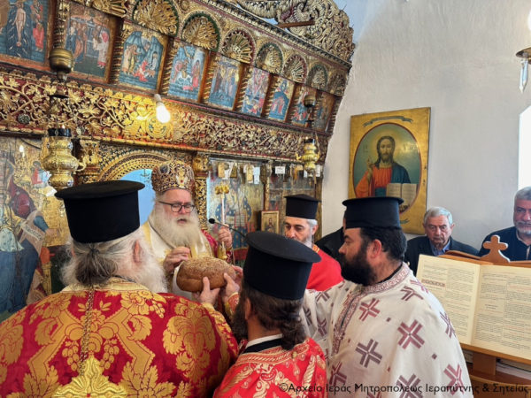 Στην ακολουθία χοροστάτησε ο Σεβασμιώτατος κ. Kύριλλος, ο οποίος κήρυξε επίκαιρα τον θείο λόγο και στο τέλος ευλόγησε το πλήθος των προσφερόμενων άρτων.