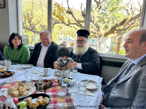 Μετά την ευλόγηση των άρτων και την Απόλυση της Θ. Λειτουργίας ο Σεβ. κ. Κύριλλος καλωσόρισε τον κ. Εμμανουήλ Φραγκούλη στην Ενορία Μουρνιών, στην οποία προσέρχεται πρώτη φορά με την ιδιότητα του Δημάρχου Ιεράπετρας, και του ευχήθηκε γόνιμη, εποικοδομητική και καρποφόρα δημαρχιακή θητεία.