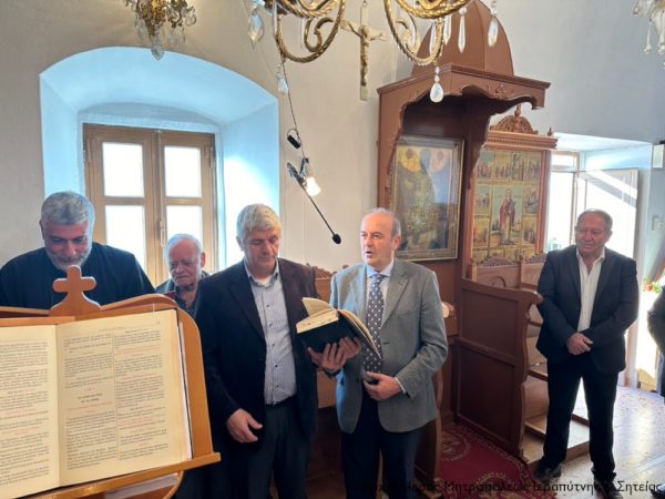 Μετά την ευλόγηση των άρτων και την Απόλυση της Θ. Λειτουργίας ο Σεβ. κ. Κύριλλος καλωσόρισε τον κ. Εμμανουήλ Φραγκούλη στην Ενορία Μουρνιών, στην οποία προσέρχεται πρώτη φορά με την ιδιότητα του Δημάρχου Ιεράπετρας, και του ευχήθηκε γόνιμη, εποικοδομητική και καρποφόρα δημαρχιακή θητεία.