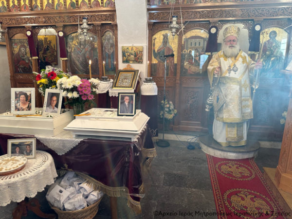 Την Κυριακή Μετά τα Φώτα, 14 Ιανουαρίου 2024, ο Σεβ. Μητροπολίτης Ιεραπύτνης και Σητείας κ. Κύριλλος χοροστάτησε στην ακολουθία του Όρθρου και στη συνέχεια ιερούργησε στον Ιερό Ενοριακό Ναό Αγίου Νικολάου και Τριών Ιεραρχών Σχινοκαψάλων Ιεράπετρας και τέλεσε τα ιερά μνημόσυνα των μακαριστών Μάρκου (εννεάμηνο) και Μαρίας (τρίμηνο) Πιτροπάκη, Γεωργίου (εννεάμηνο) και Μερόπης (συναπάντημα) Λαπιδάκη και Ιωάννου και Μαρίας Τζανάκη (συναπάντημα).