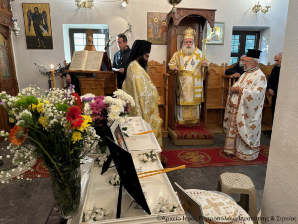 Την Κυριακή Μετά τα Φώτα, 14 Ιανουαρίου 2024, ο Σεβ. Μητροπολίτης Ιεραπύτνης και Σητείας κ. Κύριλλος χοροστάτησε στην ακολουθία του Όρθρου και στη συνέχεια ιερούργησε στον Ιερό Ενοριακό Ναό Αγίου Νικολάου και Τριών Ιεραρχών Σχινοκαψάλων Ιεράπετρας και τέλεσε τα ιερά μνημόσυνα των μακαριστών Μάρκου (εννεάμηνο) και Μαρίας (τρίμηνο) Πιτροπάκη, Γεωργίου (εννεάμηνο) και Μερόπης (συναπάντημα) Λαπιδάκη και Ιωάννου και Μαρίας Τζανάκη (συναπάντημα).