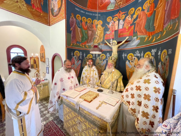 Τήν κυριώνυμο ημέρα της εορτής ο Μητροπολίτης Ιεραπύτνης και Σητείας κ. Κύριλλος χοροστάτησε στην ακολουθία του Όρθρου και στη συνέχεια ιερούργησε και κήρυξε επίκαιρα τον θείο λόγο.