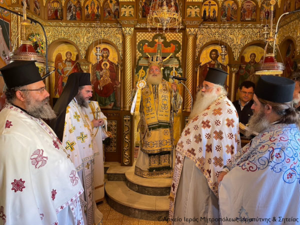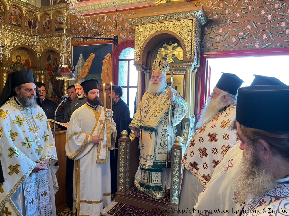 Τήν κυριώνυμο ημέρα της εορτής ο Μητροπολίτης Ιεραπύτνης και Σητείας κ. Κύριλλος χοροστάτησε στην ακολουθία του Όρθρου και στη συνέχεια ιερούργησε και κήρυξε επίκαιρα τον θείο λόγο.